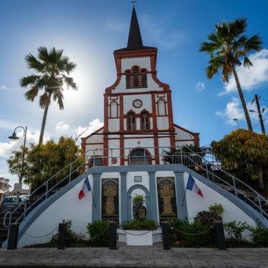 Repère historique et spirituel de Ducos. Construite au XIXᵉ siècle, elle incarne l’architecture religieuse traditionnelle martiniquaise et reste un lieu central de rassemblement et de vie locale.